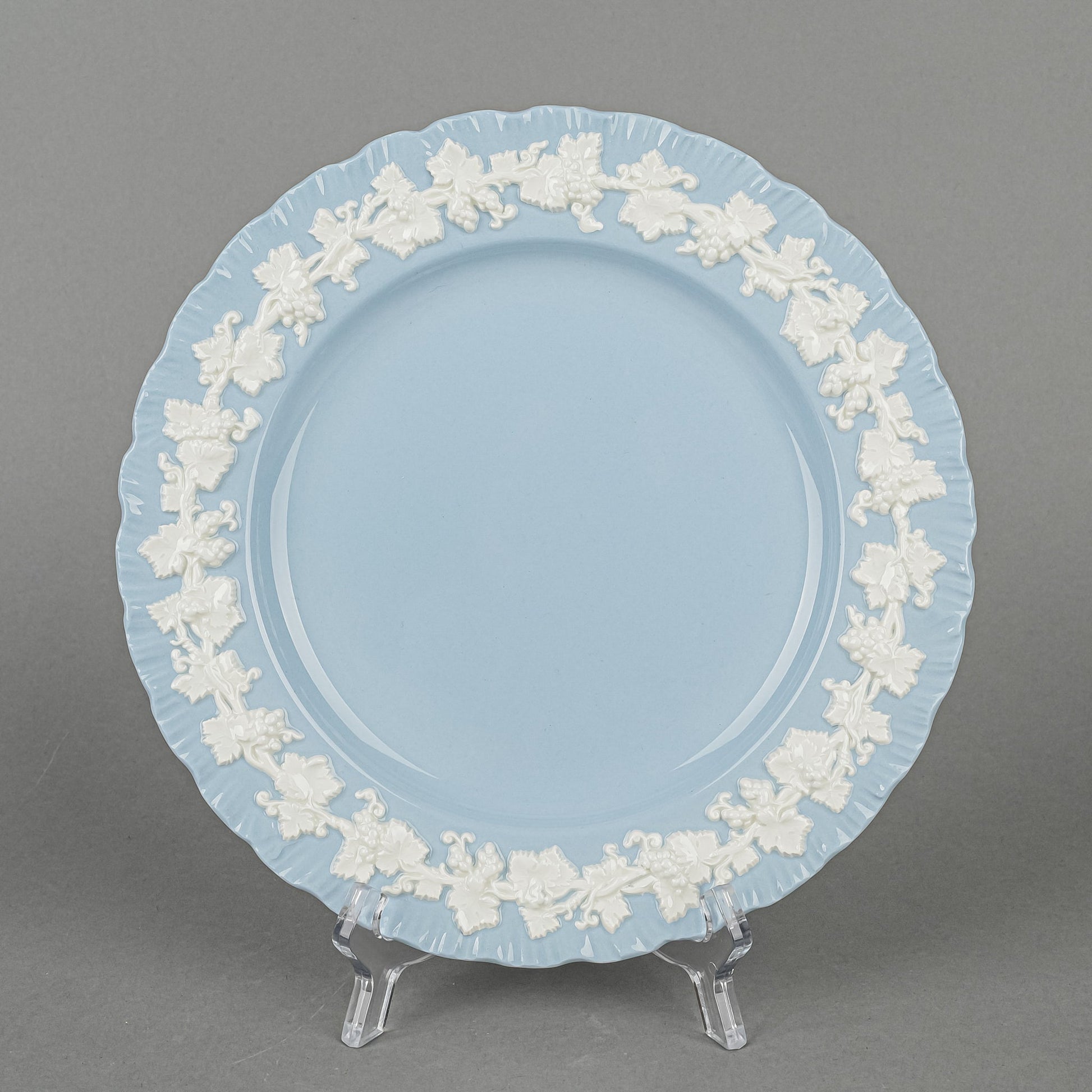 WEDGWOOD White On Blue Embossed Queens Ware Salad/Dessert Plates
